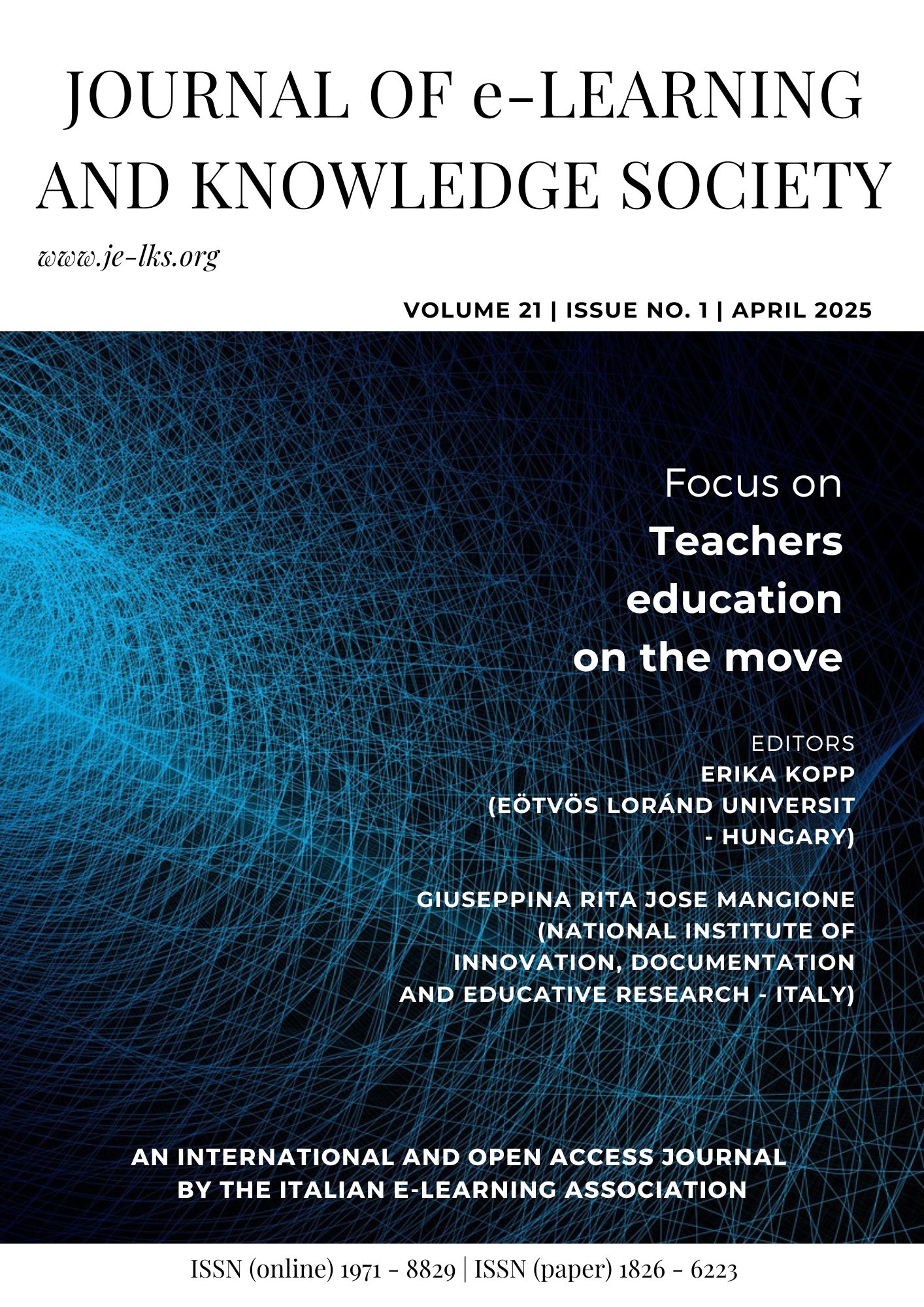 E' online il primo numero del Vol. 21 (2025) di Journal of e-Learning and Knowledge Society, dedicato allo Special Issue on "Teachers education on the move".